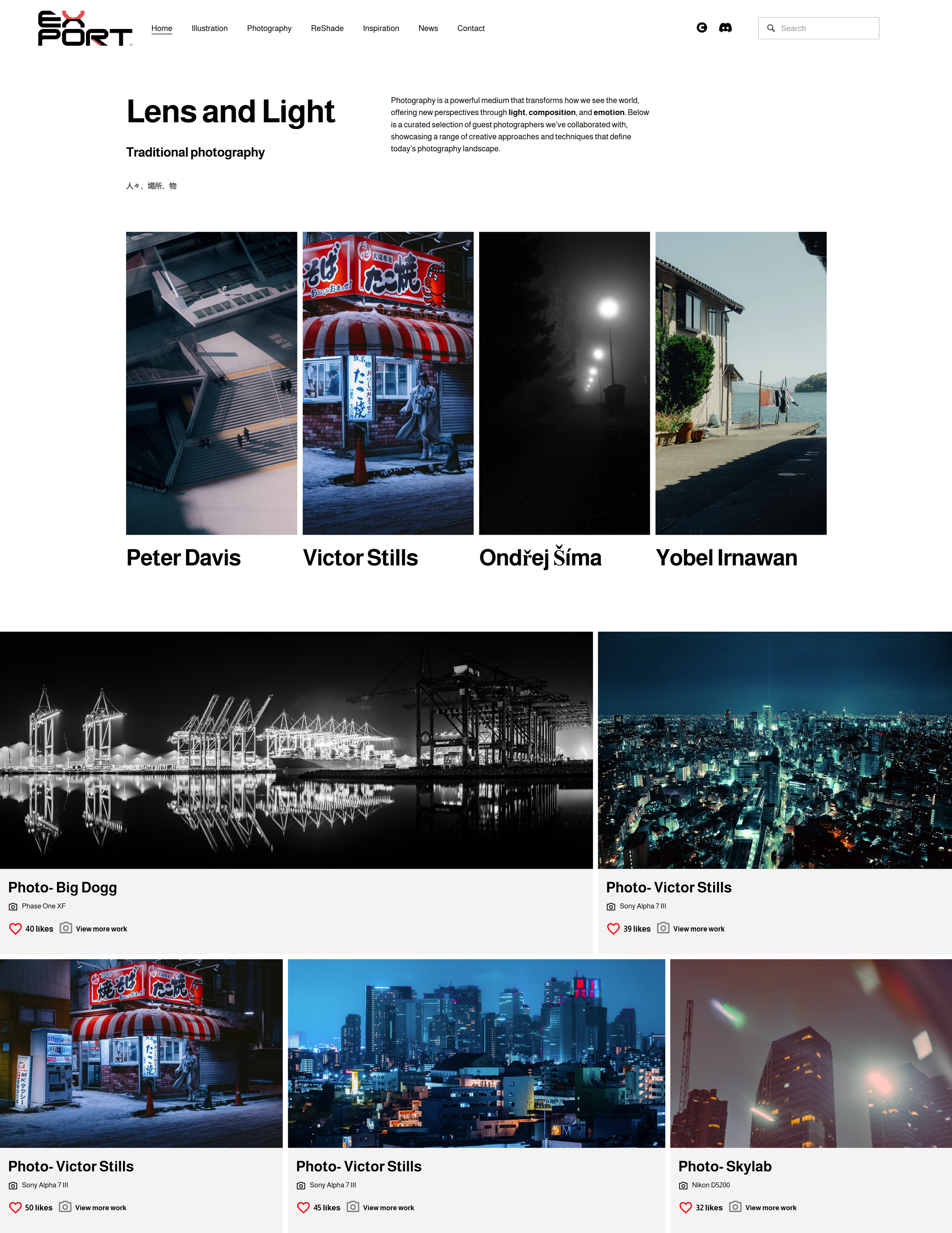 The website homepage highlights illustration, photography, in-game photography, and indie game creatives from around the world.